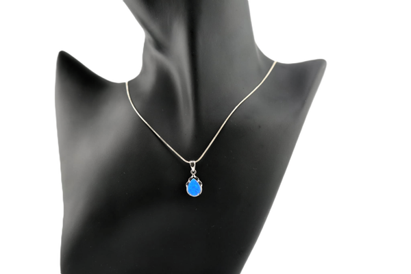 Sterling silver Blue opal tear drop earrings & snake rope chain 20'