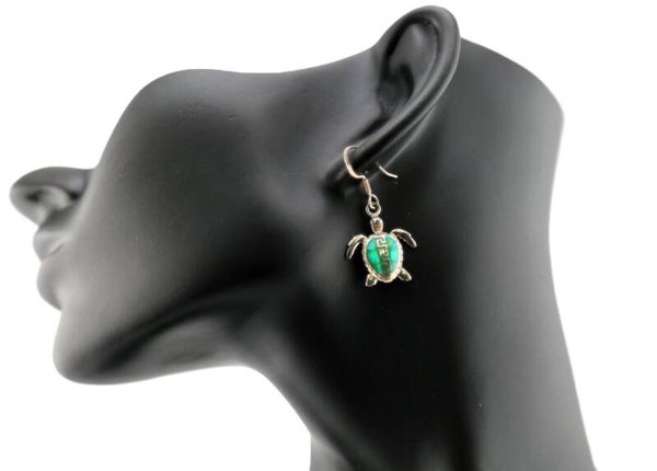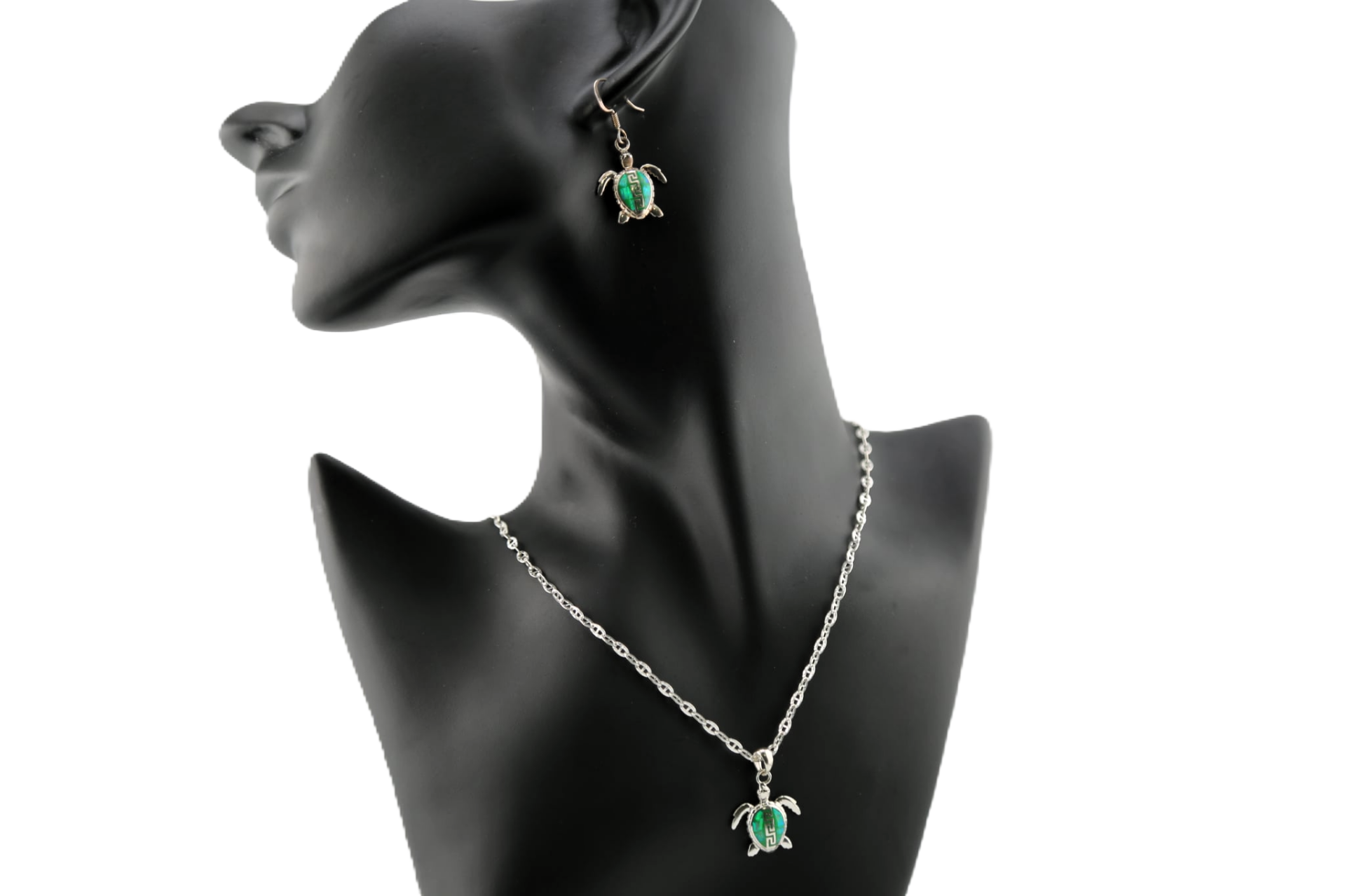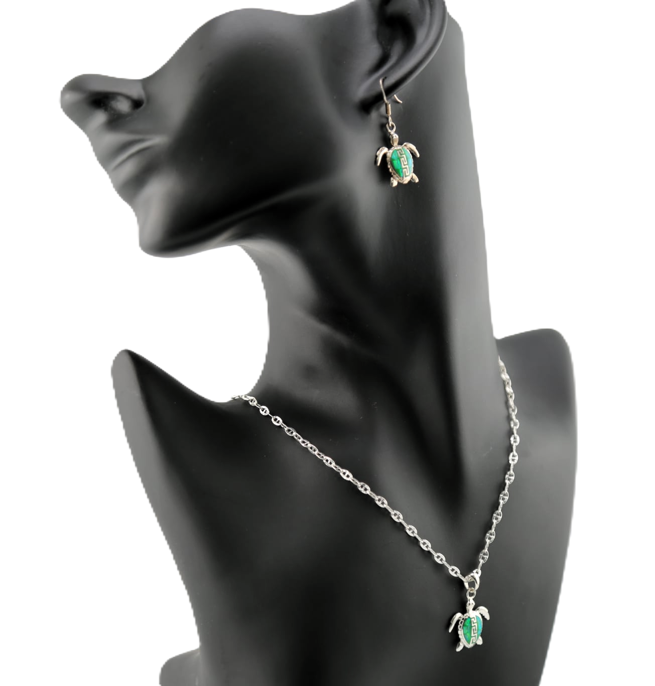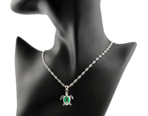Green opal sea turtle set - a pair of earrings & .925 silver chain with sea turtle charm
