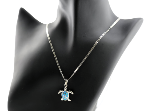 Blue opal sea turtle set - a pair of earrings & .925 silvervalentin chain with sea turtle charm
