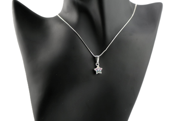 Sterling silver rainbow cubic Orion star charm on .925 silver chain